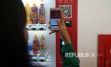 Mahasiswa Universitas Nasional tengah melakukan transaksi menggunakan JakOne Mobile Bank DKI di vending machine Kantor Pusat Bank DKI usai mengikuti edukasi perbankan yang dilaksanakan oleh Bank DKI di Jakarta, (14/05). Transaksi digital Bank DKI ini terus mengalami peningkatan, catatan terkahir meunjukan angka transaksi mencapai Rp135,36 miliar (FOTO : Dok Bank DKI)
