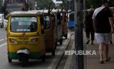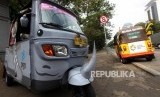 REPUBLIKA.CO.ID, JAKARTA -- Sejumlah Bajaj yang dimodifikasi berbentuk Maskot Asian Games Bhin Bhin (Burung Cendrawasih), Atung (Rusa Bawean), dan Kaka (Badak Bercula Satu) terparkir di Kawasan Monas, Jakarta, Rabu (16/5).