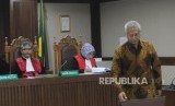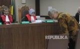 Terdakwa kasus suap proyek pada Kementerian Perhubungan yang juga mantan Dirjen Hubla Antonius Tonny Budiono saat menjalani sidang vonis di Pengadilan Tipikor, Jakarta, Kamis (17/5). (FOTO : Republika/Iman Firmansyah)
