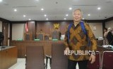 Terdakwa kasus suap proyek pada Kementerian Perhubungan yang juga mantan Dirjen Hubla Antonius Tonny Budiono seusai menjalani sidang vonis di Pengadilan Tipikor, Jakarta, Kamis (17/5). (FOTO : Republika/Iman Firmansyah)