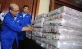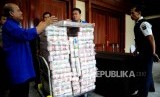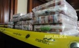 Uang ganti rugi korupsi Bantuan Likuidasi Bank Indonesia (BLBI) dengan terpidana Samadikun Hartono saat akan dilakuan penyeahan dari Kejaksaan ke Bank Mandiri di Gedung Bank Mandiri, Jakarta, Kamis (17/5). (FOTO : Republika/Iman Firmansyah)