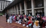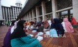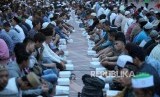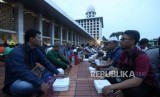 Umat Muslim menunggu berbuka puasa saat berbuka puasa bersama di Masjid Istiqlal, Jakarta, Kamis (17/5). (FOTO : Republika/Mahmud Muhyidin)