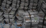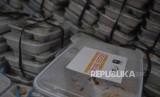 Makanan yang dibagikan oleh relawan ACT di masjid Al- Ikhlas, Tanah Abang, Jakarta, Jumat (18/5). (FOTO : Republika/Iman Firmansyah)