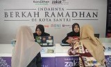 Petugas memberikan informasi kepada muzakki di Konter layanan Lembaga Amil Zakat Nasional Al-Azhar, Jakarta, Jumat (18/5). Khusus Bulan Ramadhan Lembaga Amil Zakat Nasional Al-Azhar mendirikan konter guna melayani para muzakki membayar zakat dengan mudah. (FOTO : Prayogi/Republika)