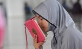 Seorang santri menghafal ayat Alquran saat mengikuti Program Nasional 20 Ramadan Menghafal Alquran di Masjid Baitussalihin, Ulee Kareueng, Banda Aceh, Jumat (18/5). Program yang diikuti ratusan santri itu bertujuan menghidupkan bulan Ramadan dan untuk menciptakan hafiz berbakat. (FOTO : Ampelsa/Antara)
