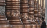 Umat muslim berada di dalam Masjid Agung Al-Falah atau Masjid Seribu Tiang usai menunaikan salat Jumat pertama Ramadan 1439 Hijriah di Jambi, Jumat (18/5). Masjid yang menjadi ikon wisata religi Provinsi Jambi dan diresmikan pemakaiannya pada 1980 oleh mantan Presiden Soeharto itu dibuat dengan 232 tiang penyangga atap dan kubah. (FOTO : Wahdi Septiawan/Antara)