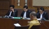 Sidang Eksepsi. Penasihat Hukum Yusril Izra Mahendra(kiri) membacakan nota keberatan saat menjalani sidang dengan agenda pembacaan eksepsi Syafruddin Arsyad Temenggung di Pengadilan Tipikor, Jakarta, Senin (21/5). (FOTO : Republika/Iman Firmansyah)