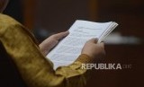 Sidang Eksepsi. Nota kebaratan diipegang Mantan Kepala Badan Penyehatan Perbankan Nasional (BPPN) Syafruddin Arsyad Temenggung dalam sidang dengan agenda pembacaan eksepsi di Pengadilan Tipikor, Jakarta, Senin (21/5). (FOTO : Republika/Iman Firmansyah)