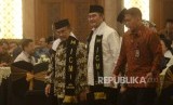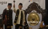 Ketua Umum ICMI Jimly Asshidiqie dan Sekjen ICMI Mohammad Jafar Hafsa membuka acara sarasehan nasional keluarga bangsa Refleksi 20 Tahun Reformasi di Jakarta, Senin (21/5). (FOTO : Republika/Prayogi)