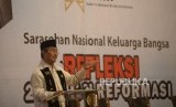 Ketua Umum ICMI Jimly Asshidiqie memberikan sambutan dalam acara sarasehan nasional keluarga bangsa Refleksi 20 Tahun Reformasi di Jakarta, Senin (21/5). (FOTO : Republika/Prayogi)