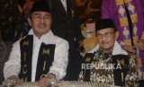 Ketua Umum ICMI Jimly Asshidiqie bersama Presiden Ketiga RI yang juga Ketua Dewan Kehormatan ICMI BJ Habibie hadir dalam acara sarasehan nasional keluarga bangsa Refleksi 20 Tahun Reformasi di Jakarta, Senin (21/5). (FOTO : Republika/Prayogi)