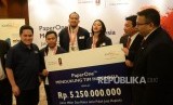 REPUBLIKA.CO.ID, JAKARTA -- Ketua KOI Erick Thohir bersama Ketua Pengurus Tanoto Foundation Sihol Aritonang, Direktur Corporate Affairs Grup April, Agung Laksamana, dan perwakilan atlet saat serah terima dana dukungan pelaksanaan ASIAN Games di Jakarta, Selasa (22/5).