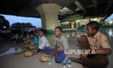 REPUBLIKA.CO.ID, JAKARTA -- Sejumlah anak menyantap makanan saat berbuka puasa bersama di Masjid Babah Alun, Jalan Papanggo, Tangjung Priok, Jakarta, Rabu (23/5).