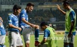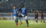 Striker Persib Bandung Jonathan Bauman (kedua kiri) melakukan seleberasi seusai mencetak gol ke gawang PSM Makasar saat menjalani laga lanjutan Go-jek Liga 1 antara Persib Bandung melawan PSM Makasar di Stadion Gelora Bandung Lautan Api (GBLA), Bandung, Jawa Barat, Rabu (23/5) malam. (FOTO : Raisan Al Farisi/Antara)