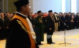 Pelantikan Gubernur Bank Indonesia. Gubernur Bank Indonesia Perry Warjiyo mengucapkan sumpah jabatan didepan Hakim Agung saat pelantikan di Mahkamah Agung, Jakarta, Kamis (24/5). (FOTO : Republika/ Wihdan)