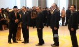 Pelantikan Gubernur Bank Indonesia. Gubernur Bank Indonesia Perry Warjiyo menerima ucapan selamat dari undangan usai pelantikan di Mahkamah Agung, Jakarta, Kamis (24/5). (FOTO : Republika/ Wihdan)