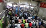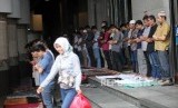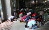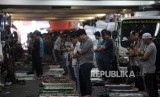 REPUBLIKA.CO.ID, JAKARTA -- Jamaah shalat Jumat di Pasar Tanah Abang, Jakarta, Jumat (25/5), membeludak hingga ke selasar pertokoan.