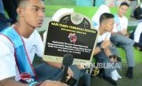 Seorang pelajar memperlihatkan tulisan Hari Tampa Tembakau Sedunia pada pameran seni instalasi karya seniman nasional Ika Vantiani dalam rangka memperingati Hari Tanpa Tembakau Sedunia yang digelar Pemerintah Kota Bandung, di Taman Film, Kota Bandung, Ahad (27/5). (FOTO : Republika/Edi Yusuf)