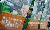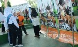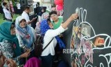 Pengunjung menempelkan gambar-gambar yang berkaitan dengan bahaya rokok pada pameran seni karya seniman nasional Ika Vantiani dalam rangka memperingati Hari Tanpa Tembakau Sedunia yang digelar Pemerintah Kota Bandung, di Taman Film, Kota Bandung, Ahad (27/5). (FOTO : Republika/Edi Yusuf)