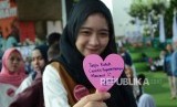 Pengunjung memperlihatkan tulisan dukungan tampa rokok saat pameran seni instalasi karya seniman nasional Ika Vantiani dalam rangka memperingati Hari Tanpa Tembakau Sedunia yang digelar Pemerintah Kota Bandung, di Taman Film, Kota Bandung, Ahad (27/5). (FOTO : Republika/Edi Yusuf)