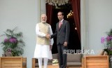 REPUBLIKA.CO.ID, JAKARTA -- Presiden Joko Widodo (Jokowi) menyambut kedatangan Perdana Menteri India Narendra Modi di Istana Merdeka, Jakarta, Rabu (30/5).