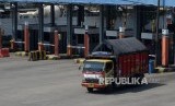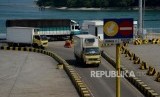 Sejumlah truk melintas di kawasan Peabuhan Merak, Banten, Rabu (30/5). (FOTO : Republika/Prayogi)