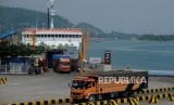 REPUBLIKA.CO.ID, MERAK -- Sejumlah truk melintas di kawasan Peabuhan Merak, Banten, Rabu (30/5).