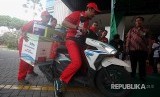 GM Pertamina MOR V Ibnu Chouldum (kanan) menyaksikan Motor Bahan Bakar Khusus disela peluncuran tim satgas distribusi BBM dan LPG di Surabaya, Jawa Timur, Rabu (30/5). Motoris BBK tersebut merupakan upaya Pertamina dalam melayani serta menyediakan BBM Pertamax dan Dexlite yang dapat menjangkau kawasan padat lalu lintas mulai H-7 hingga H+7 Lebaran. (FOTO : Moch Asim/Antara)