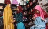 Penjahit membuat mukena sulam untuk selanjutnya diekspor ke Malaysia di studio jahit Almira Handmade di Malang, Jawa Timur, Rabu (30/5), Permintaan mukena sulam yang dijual Rp125 ribu hingga 500 ribu rupiah per lembar tersebut meningkat hingga 20 persen sejak sebulan terakhir. (FOTO : Bowo Sucipto/Antara)