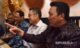 Presiden Direktur PT Adaro Energy Tbk Garibaldi “Boy” Thohir didampingi (dari kiri) Direktur PT Adaro Energy Tbk Mohammad Syah Indra Aman, Presiden Direktur PT Adaro Power Mohammad Effendi dan Direktur PT Adaro Energy Tbk David Tendian memberikan keterangan tentang ekspansi bisnis Adaro di sela acara buka puasa bersama wartawan di Jakarta, Rabu (30/5). Untuk menjawab tantangan masa depan, Adaro terus melakukan ekspansi bisnis hingga disrupsi inovasi (disruptive innovation). (FOTO : Prasetyo Utomo/Antara)