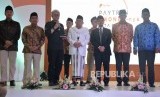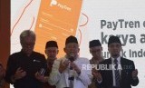 Pendiri Paytren, Ustaz Yusuf Mansur, (tengah) Direktur Utama PT Veritra Santosa Internasional, Hari Prabowo (ketiga kiri), Ketua MUI, K.H Maaruf Amiin (tengah), Gubernur DKI Jakarta, Anies Baswedan (kedua kanan) beserta menteri kabinet kerja saat melakukan peluncuran uang elektronik paytren dii Tangerang, Banten, Jumat (1/6). (FOTO : Republika/Iman Firmansyah)
