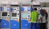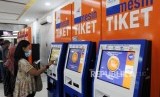 Warga mencetak tiket boarding pass untuk mudik lebaran di Stasiun Pasar Senen, Jakarta, Jumat (1/6). (FOTO : Republika/Putra M. Akbar)