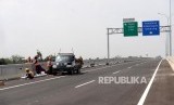 Persiapan Jalur Mudik. Jalan Tol Brebes - Pemalang, Brebes, Jawa Tengah, Sabtu (2/6). (FOTO : Republika/ Wihdan)