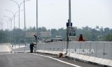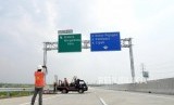 REPUBLIKA.CO.ID, BREBES -- Pekerja memasang kelengkapan Jalan Tol Brebes - Pemalang, Brebes, Jawa Tengah, Sabtu (2/6).