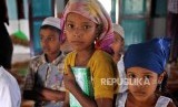Sejumlah anak muslim bersiap mengikuti tadarus alquran di masjid kampung Char Pauk, Sittwe, Myanmar, Sabtu (2/6). (FOTO : Republika/Edwin Dwi Putranto)