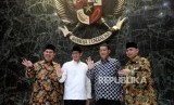 Wakil Gubernur DKI Jakarta Sandiaga Salahuddin Uno (kedua kiri), Ketua Badan Amal, Zakat, Infaq dan Shadaqah DKI Jakarta Zahrul Wildan (kiri), Wakil Ketua Bazis Amirudin (kanan) dan Ustadz Dr Arief Mufti (kedua kanan) berfoto bersama disela-sela acara berbuka puasa bersama di Balai Kota, Jakarta, Senin (4/6). (FOTO : Republika/Mahmud Muhyidin)