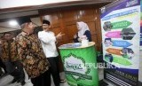 Wakil Gubernur DKI Jakarta Sandiaga Salahuddin Uno (kedua kiri) didampingi Ketua Badan Amal, Zakat, Infaq dan Shadaqah DKI Jakarta Zahrul Wildan (kiri), meninjau stan BAZIS, disela-sela buka puasa bersama di Balai Kota, di Jakarta, Senin (4/6). (FOTO : Antara/Audy Alwi)
