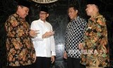 Wakil Gubernur DKI Jakarta Sandiaga Salahuddin Uno (kedua kiri) berbincang dengan Ketua Badan Amal, Zakat, Infaq dan Shadaqah (BAZIS) DKI Jakarta Zahrul Wildan (kiri), Wakil Ketua BAZIS Amirudin (kanan) dan Ustadz Dr Arief Mufti (kedua kanan) disela-sela acara berbuka puasa bersama di Balai Kota, Jakarta, Senin (4/6). (FOTO : Republika/Mahmud Muhyidin)