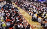 Ratusan anak yatim berbuka puasa bersama di Kantor Pusat Pertamina, Jakarta, Senin (4/6). Selama bulan Ramadan tahun ini, Pertamina memberikan santunan bagi 38.052 anak yatim dan dhuafa yg berasal dari Unit Operasi dan Anak Perusahaannya di seluruh Indonesia. (FOTO : Akbar Nugroho Gumay/Antara)