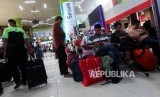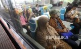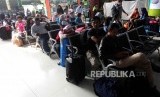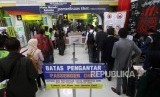 REPUBLIKA.CO.ID, JAKARTA -- Sejumlah calon pemudik mengantre saat pemeriksaan tiket di Stasiun Gambir, Jakarta, Selasa (5/6).