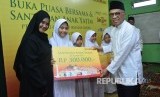 Dirut Bank BTN Maryono memberikan santunan kepada perwakilan penerima santunan anak yatim di Menara Bank BTN, Jakarta, Selasa (5/6). Dalam rangka Nuzul Quran 1439 H Bank BTN memberikan santunan dan bantuan untuk peningkatan kualitas pendidikan bagi yayasan para anak yatim. (FOTO : Prayogi/Republika)