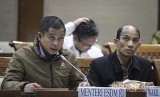 Menteri Energi dan Sumber Daya Mineral (ESDM) Ignasius Jonan (kiri) didampingi Wakil Menteri ESDM Arcandra Tahar (kanan) menyampaikan paparan pada rapat kerja dengan Komisi VII DPR di Kompleks Parlemen Senayan, Jakarta, Selasa (5/6). (FOTO : Dhemas Revianto/Antara)