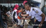 Petugas PT Pelindo I membantu pemudik menaiki KM Sabuk Nusantara di Pelabuhan Sri Bintan Pura, Tanjungpinang, Kepulauan Riau, Selasa (5/6). Sebanyak 470 penumpang diberangkatkan PT Pelindo I menuju ke beberapa wilayah seperti Anambas, Natuna dan Tambelan. (FOTO : M N Kanwa/Antara)