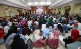 Suasana para agen dan loper saat mengikuti buka puasa bersama agen dan loper koran Harian Republika di SMKN 57, Jakarta, Selasa (5/6). (FOTO : Republika/Mahmud Muhyidin)