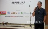 Dirut Republika Media Mandiri Agoosh Yoosran memberikan sambutan saat acara buka puasa bersama agen dan loper koran Harian Republika di SMKN 57, Jakarta, Selasa (5/6). (FOTO : Republika/Mahmud Muhyidin)