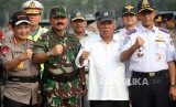 Kapolri Jenderal Tito Karnavian (dari kiri ke kanan) bersama Panglima TNI Marsekal Hadi Tjahjanto, Menteri PUPR Basuki Hadimuljono dan Gubernur DKI Jakarta Anies Baswedan berfoto bersama seusai apel Operasi Kepolisian Terpusat (Ketupat) 2018 di Lapangan Monas, Jakarta, Rabu (6/6). (FOTO : Republika/Mahmud Muhyidin)
