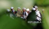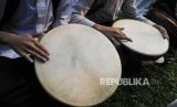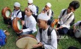 REPUBLIKA.CO.ID,JAKARTA -- Anak-anak latihan marawis sesaat sebelum tampil di Masjid Agung Sunda Kelapa, Jakarta, Rabu (6/6).