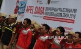 REPUBLIKA.CO.ID, JAKARTA -- Wakil Presiden Republik Indonesia Jusuf Kalla selaku Ketua Umum Palang Merah Indonesia (PMI) memimpin Apel Siaga Lebaran di Lapangan Utama Stasiun Gambir. Apel siaga tersebut sekaligus melepas tim relawan PMI yang akan bertugas dalam siaga lebaran 2018.