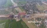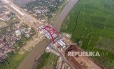 REPUBLIKA.CO.ID, SEMARANG -- Pembangunan jembatan Kali Kuto proyek Tol Batang- Semarang di Jawa Tengah, Kamis (7/6).
