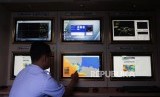 Posko Info Cuaca :Petugas mengecek informasi cuaca dan gelombang perairan selat Sunda di Posko Info Cuaca BMKG di Pelabuhan Merak, Banten, Jumat (8/6). (FOTO : Republika/Prayogi)